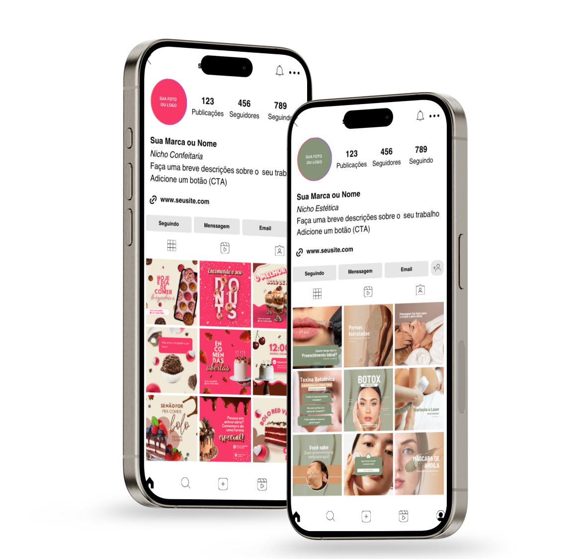 Templates editáveis para criar um feed alinhado, sofisticado e estratégico. Menos improviso, mais clareza — para que o seu Instagram trabalhe por si todos os dias.